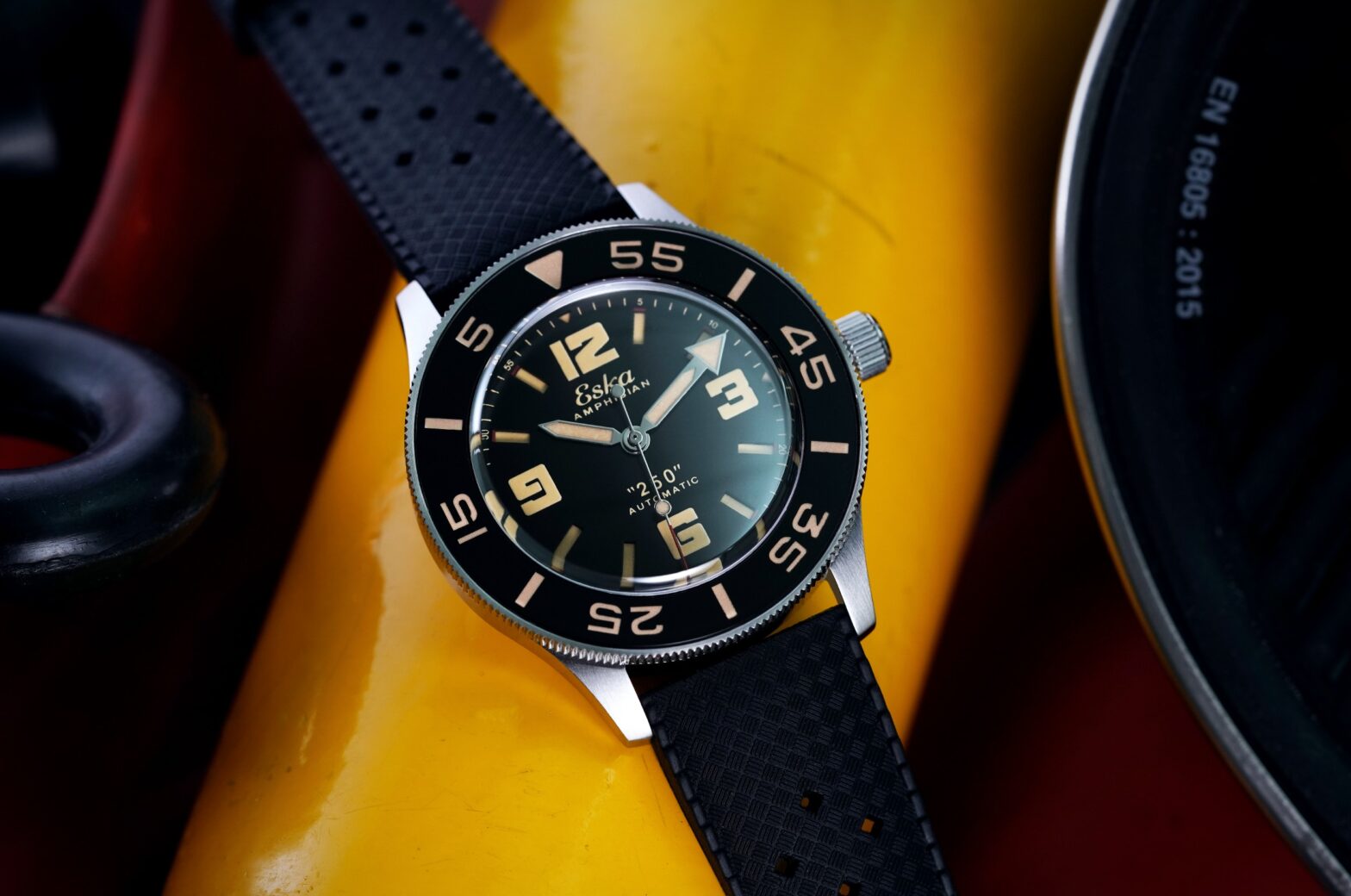 An icon. A cult watch. A mythical model. For the past few days, we’ve been reading nothing but praise about a new watch: the Amphibian 250 launched by Eska. Or rather relaunched, as the project that appeared on Kickstarter is an opportunity to revive a brand born at the start of the 20th century and one of its flagship models from the 1960s.